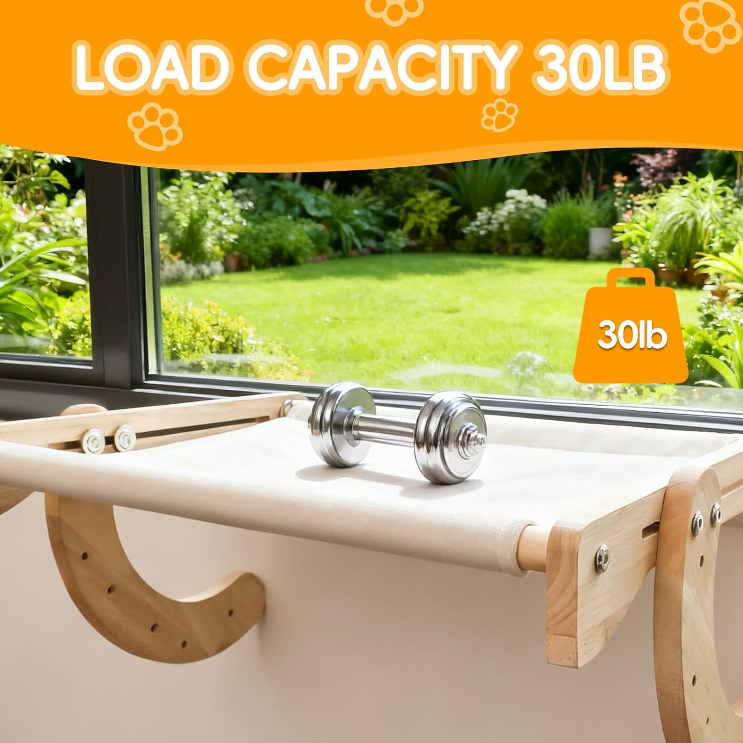 - 【Sturdy structure and high-quality materials】It can easily support 30 pounds. Our cat window Hammock sill is made of high-quality oak and high-quality fabric. Please rest assured that your cat can safely rest on the window side without swaying or tilting.
