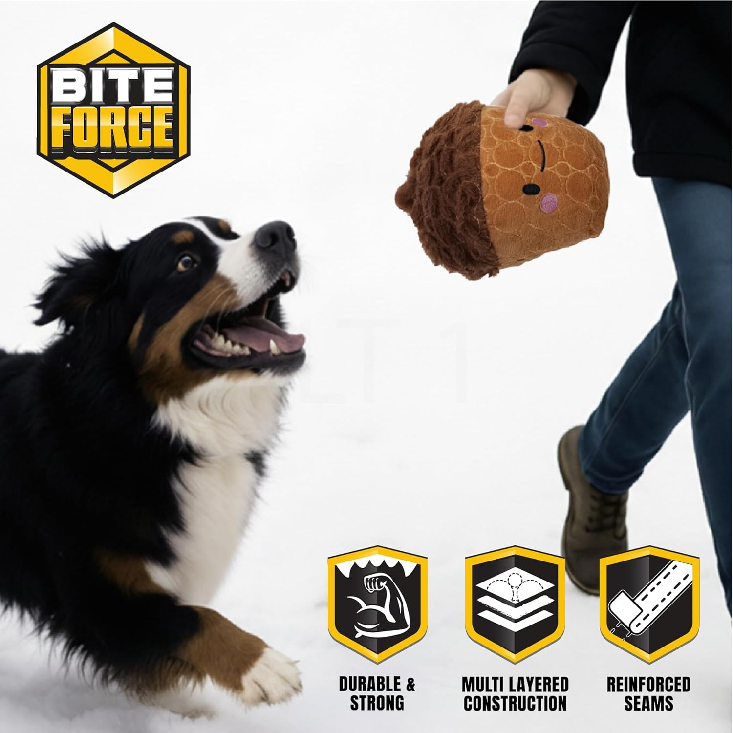 Bite Force -Durable & Strong Dog Toy Cheeky Acorn with Squeaker, Kevlar-Reinforced for Aggressive Chewers for Small Medium Large Dogs - Brown.