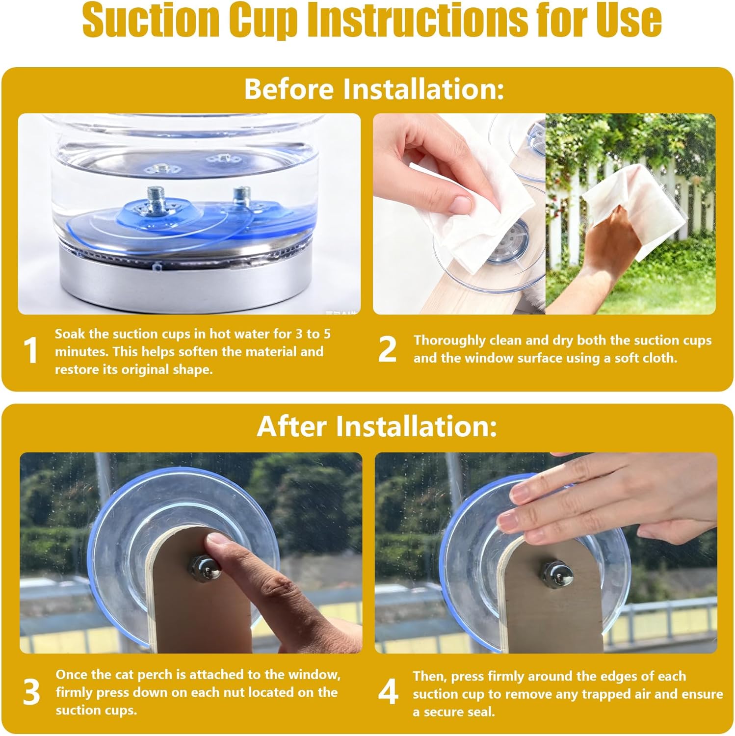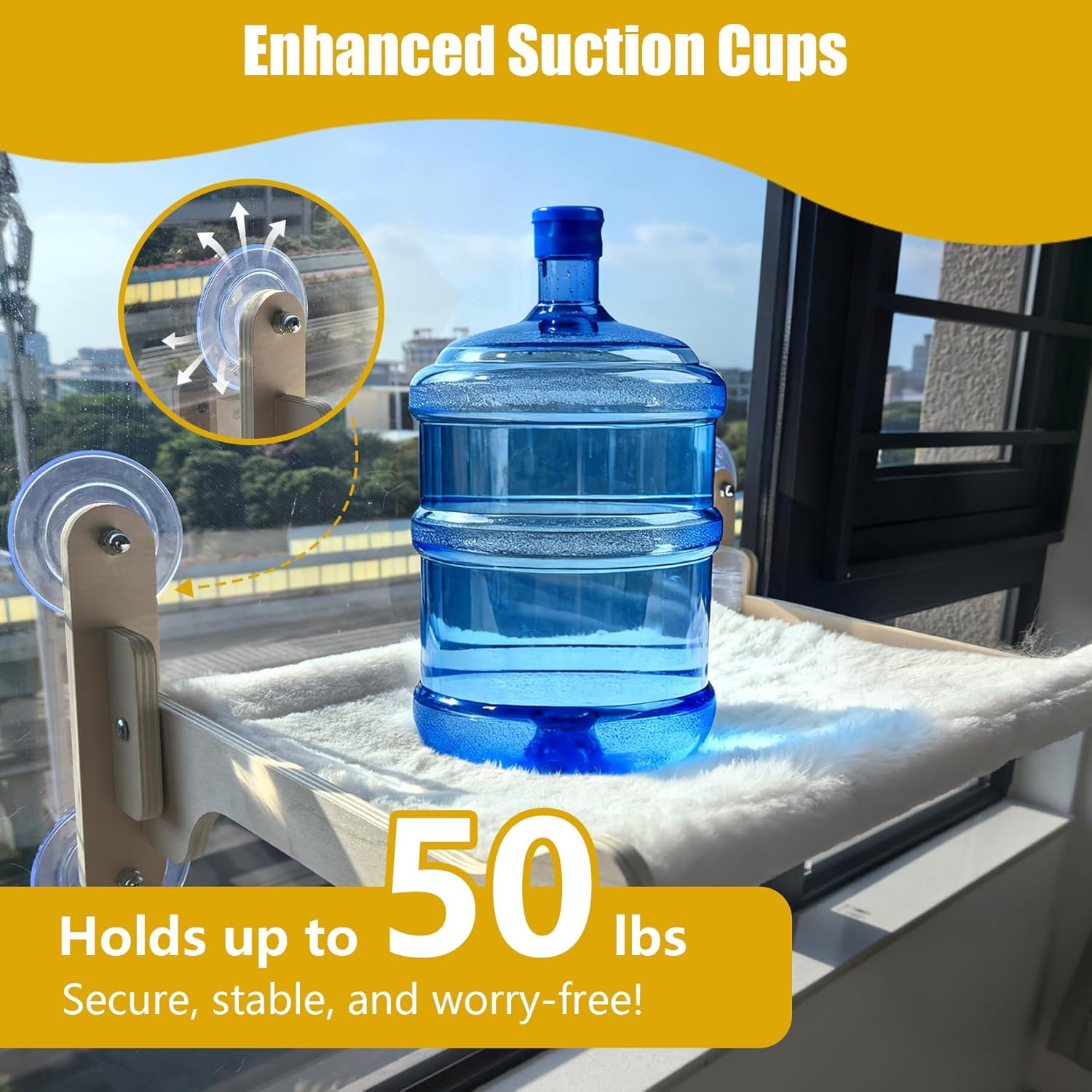- Sturdy & Reliable Construction Holds Up to 50 lbs: Engineered with a solid wood frame and reinforced with heavy-duty suction cups, this cat window perch for large cats securely supports up to 44 lbs—making it suitable for multiple pets or bigger breeds. Nylvian’s perch ensures stable jumping, stretching, and napping without wobbling or slipping, offering pet owners peace of mind