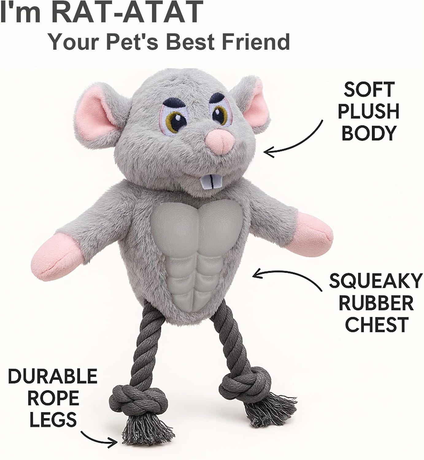 Funny Muscle Mouse Dog Toy – Plush Rat with Squeaky Rubber Chest & Rope Legs, Durable Interactive Chew Toy for Medium & Large Dogs, Cute Stuffed Animal for Tug, Fetch & Dental Play