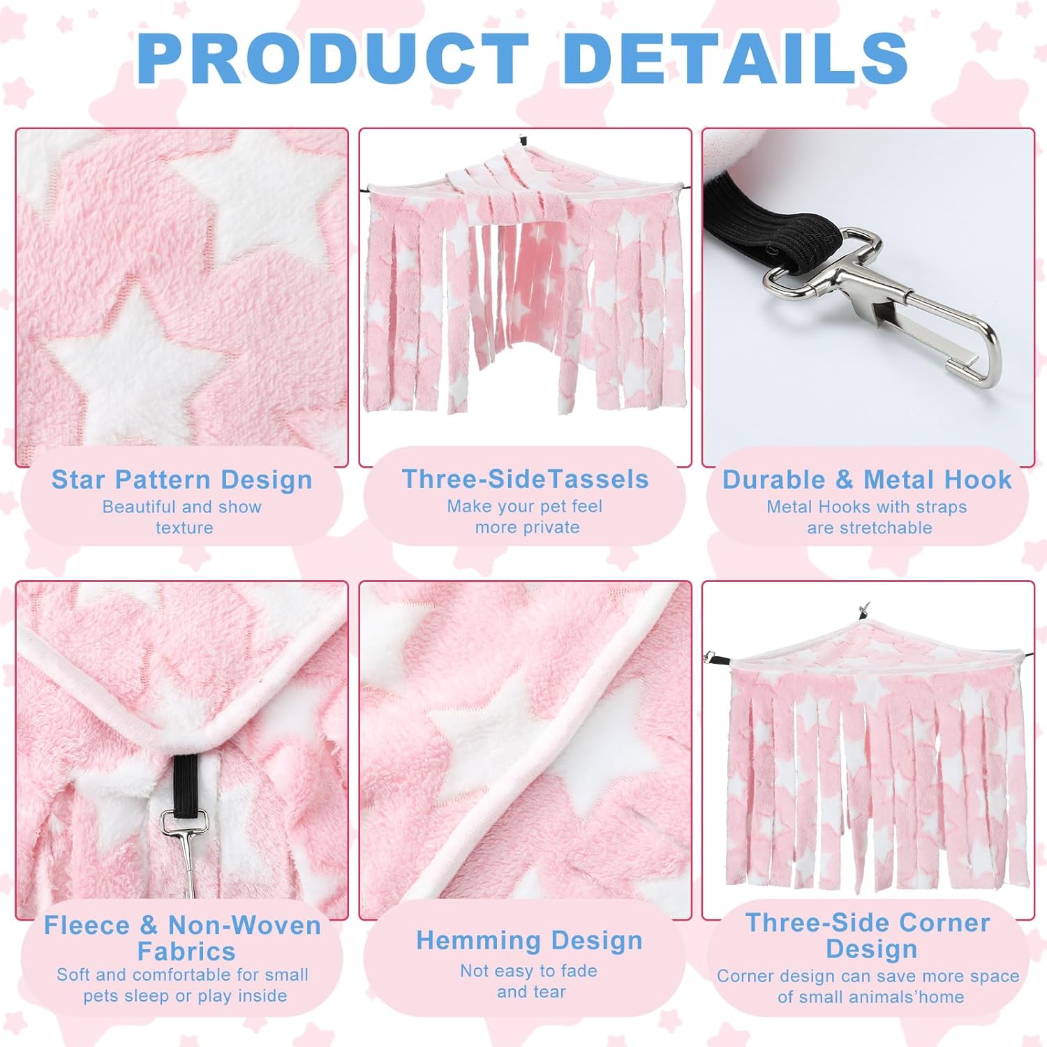 - Hammock and Hideout 2 in 1: this small animal corner decor can provide a nice hiding place for your pets; With tassels on the 3 sides to make the guinea pigs feel safer, it provides your small pets with a warm and comfortable place to play; When the hamster climbs up the top floor, it can be applied as a hammock to rest, and they will be happy to shuttle back and forth under the fleece forest and enjoy this toy; Just sit down and enjoy watching them pop in and out