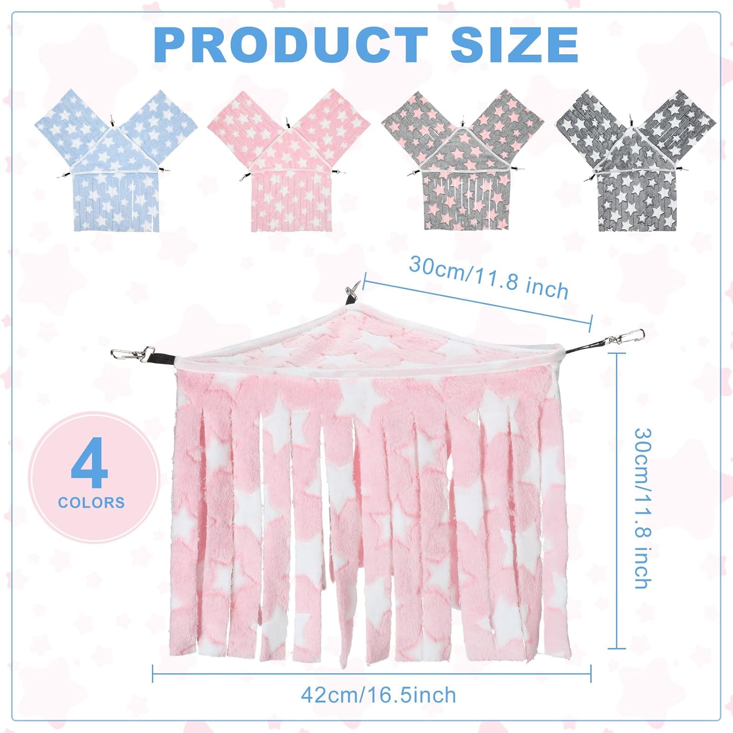 - Package Includes: you will get 4 guinea pig hideouts with pentagram pattern designs in 4 different colors for you to choose from, assorted colors to satisfy your different needs; The triangle top measures about 16.5 x 11.8 x 11.8 inches/ 42 x 30 x 30 cm, and the length of the tassel is approximately 11.8 inches/ 30 cm which can be trimmed as needed; Please make sure your guinea pig cage can accommodate the house before purchasing