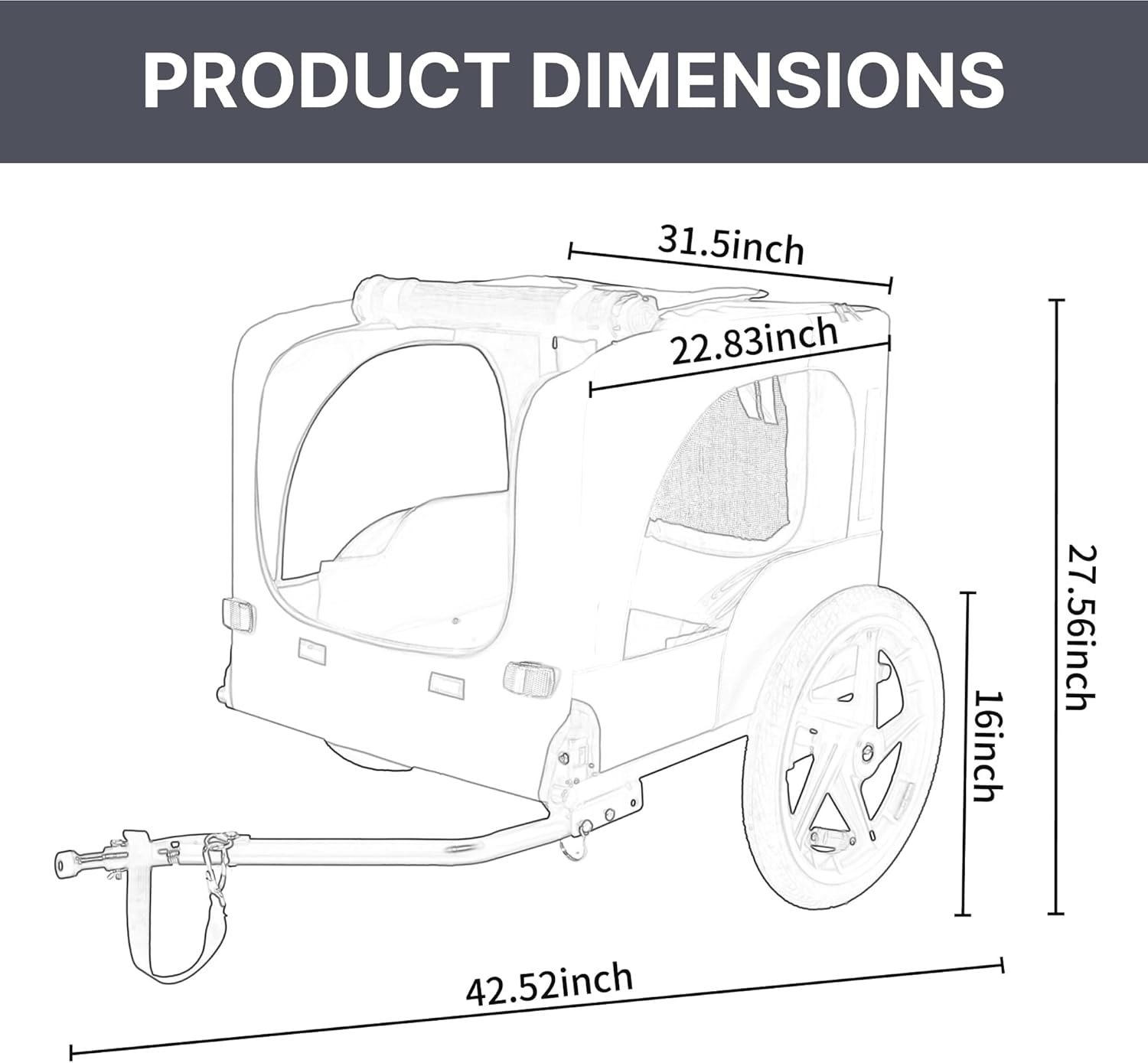 - The dog bike trailer is equipped with 20-inch inflatable rubber wheels: The highly elastic and wear-resistant rubber wheels ensure smooth driving on various terrains, which is superior to the fragile plastic wheels.