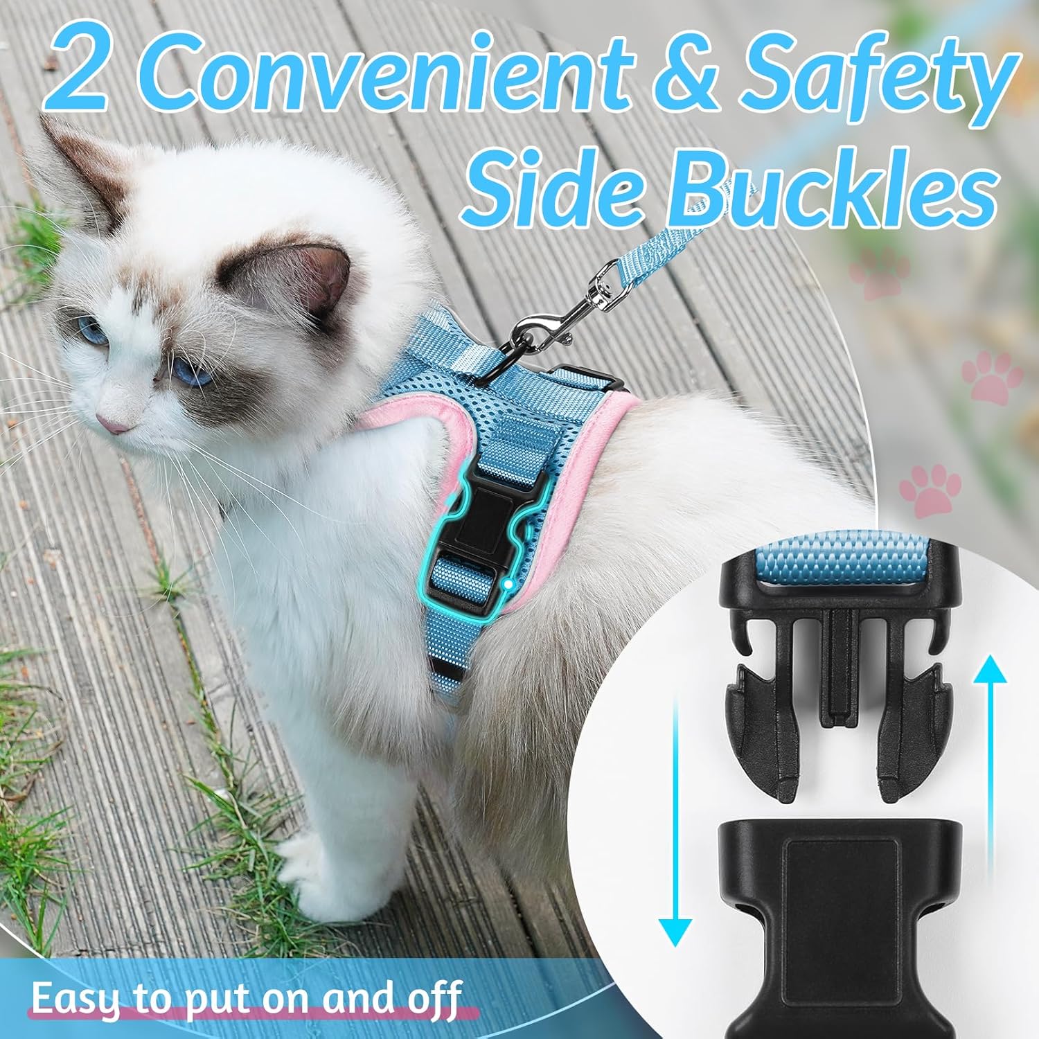 - Cloud-light Comfort: Made with ultra-soft air-mesh weighing only 3.5 oz, this breathable harness keeps your kitty cool and comfy on sunny strolls. Its vest design effectively redirects leash pressure away from the throat, preventing choking risks for worry-free fun