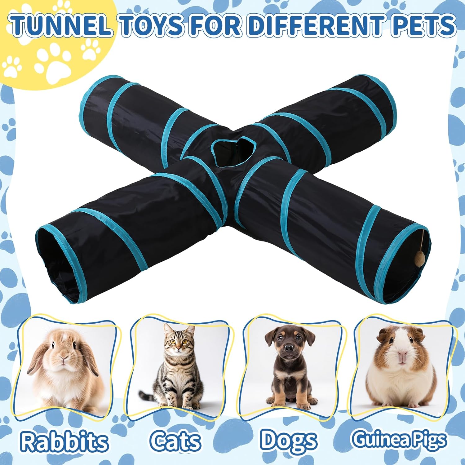 Pet Cat Tunnel, 4-Way Junction Tunnels for Indoor Cats, Collapsible Pet Tunnel for Kitten, Puppy, Rabbit, 25cm-Wide Tunnels, Durable & Breathable, with Peek Hole Toy Ball