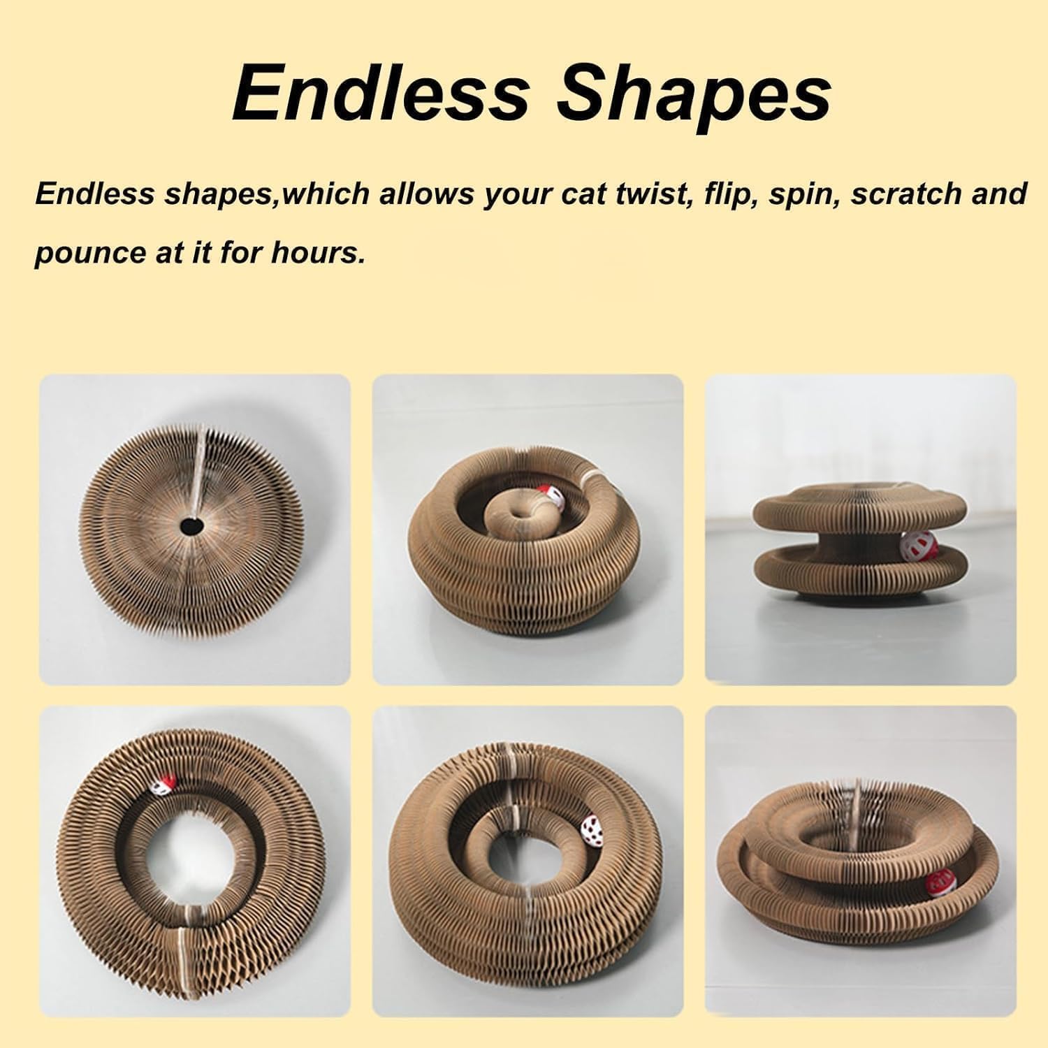 - 【Fun Accordion Cat Toy】 Cats show symptoms of anxiety and stress that stem from boredom.Our Kitten Curl Cat Toy comes with a toy ball and a track. Your cat will love tracking and scratching the ball, satisfying their natural scratching instinct. Plus, it helps protect your furniture from being damaged.