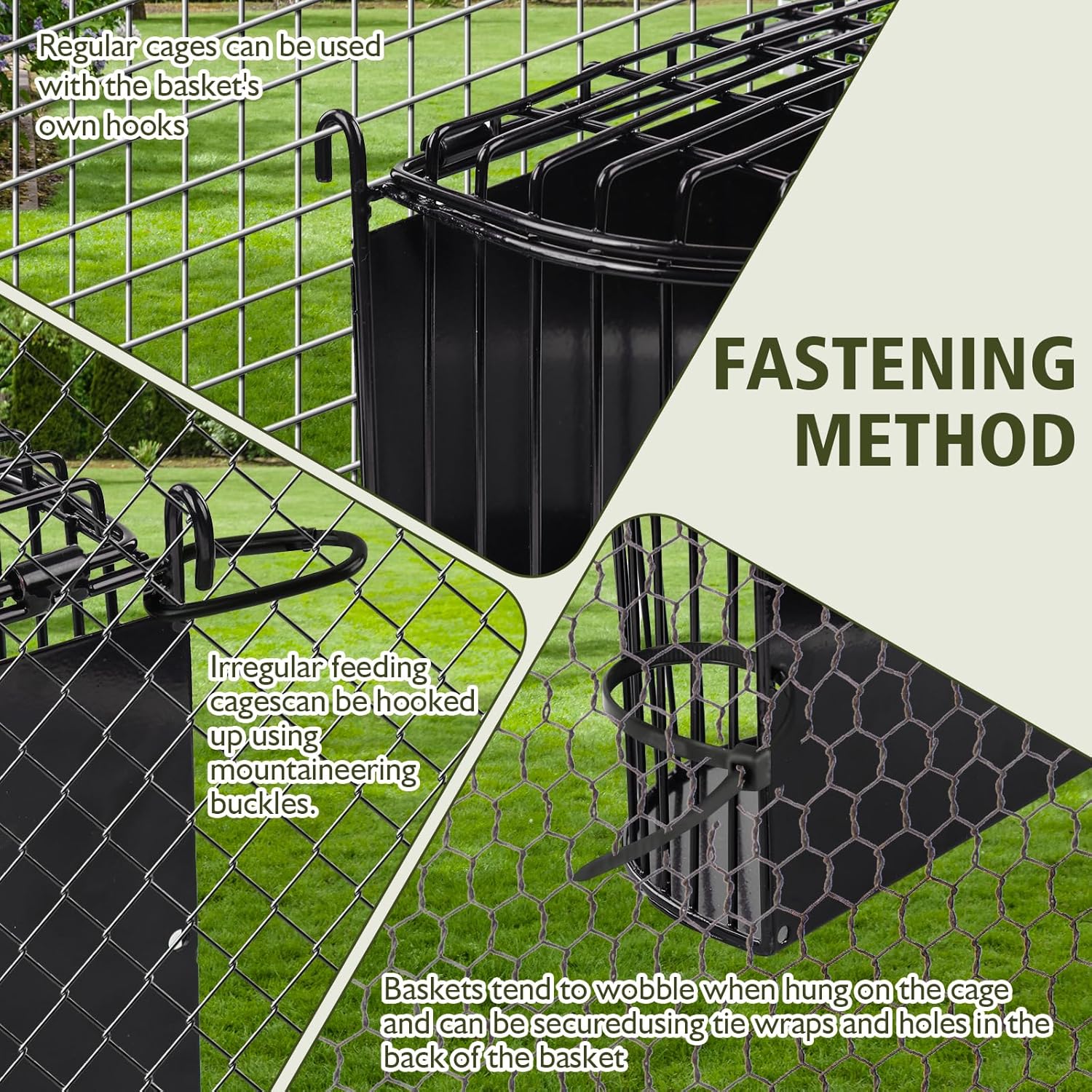 - Easy to Fasten:In order to fix the pet feeder on various irregular feeding cages, Bunny Feeder with hook design, simply attach it to the cage bars. The package also comes with 2 metal mountaineering buckles and 4 black tie straps, even without using the hooks on the hay rack, the feeding basket can be easily fixed, solving your mounting and fixing hassles.
