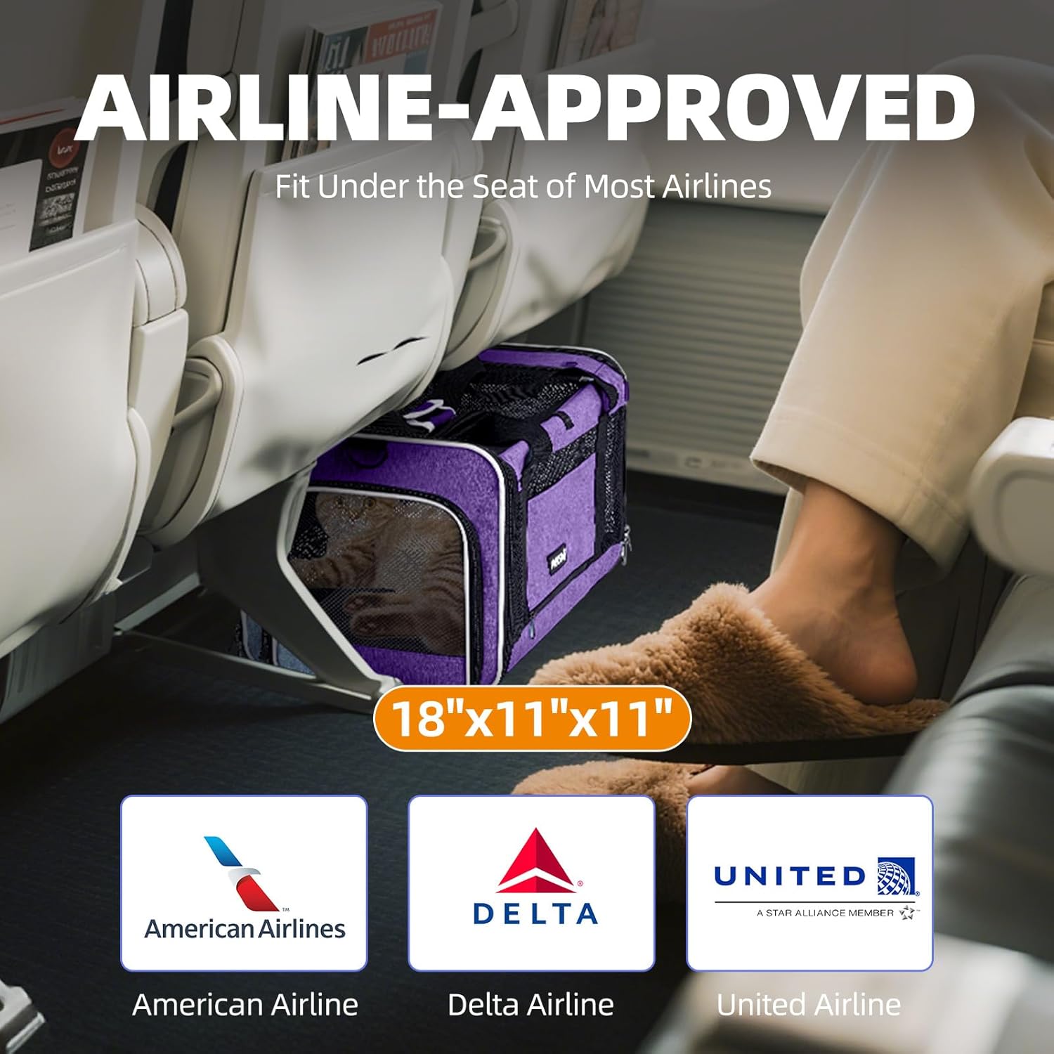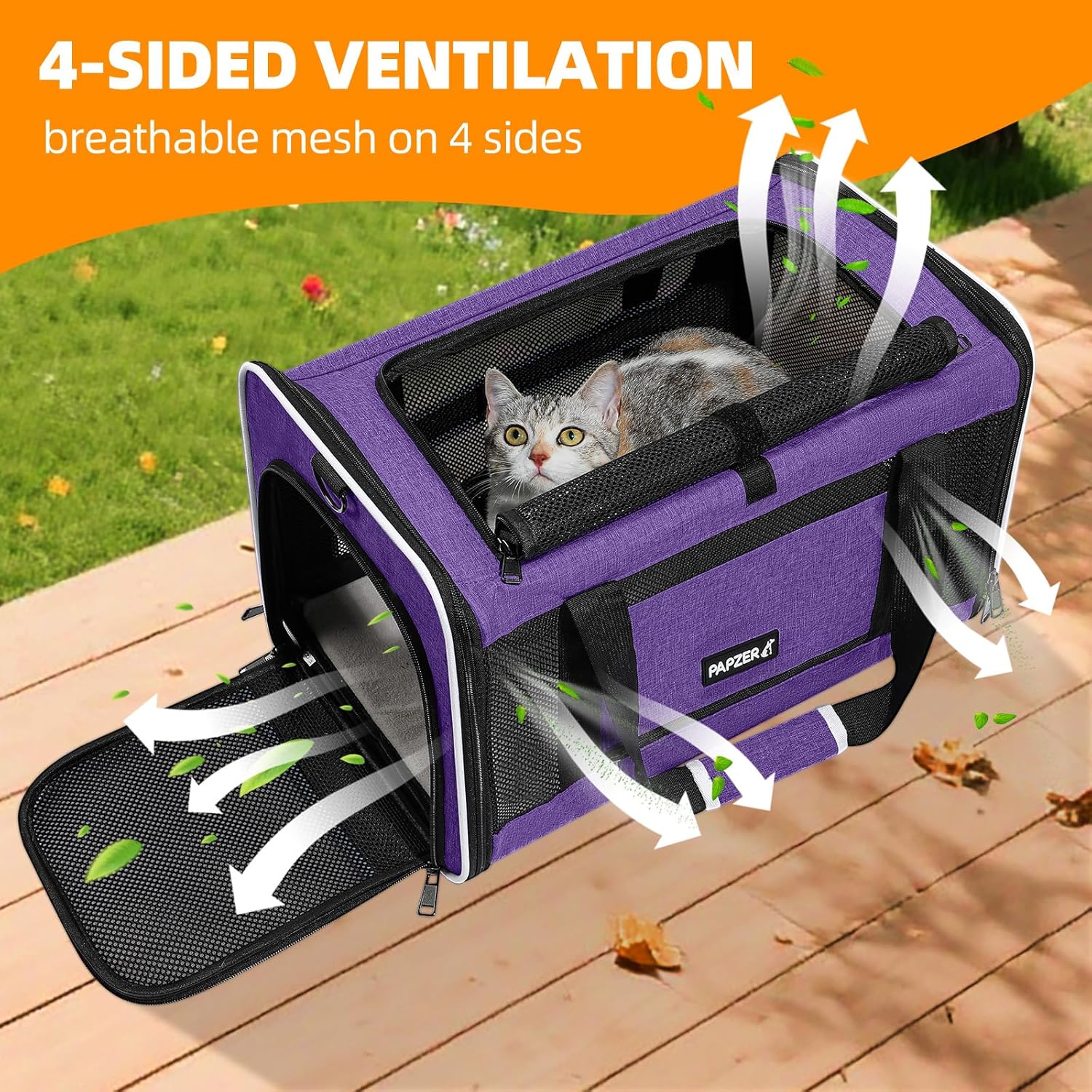 Cat Carrier Soft-Sided 18x11x11 Inch Travel Bag for Medium Cats over 15lbs, Small Dog Carrier Crate Top Entry Breathable Mesh Puppy 12 Pounds, Pet Rabbit Carrying Cage Kennel Collapsible Purple