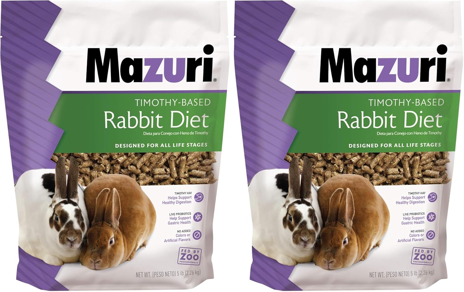 Mazuri | Nutritionally Complete Timothy Hay-Based Rabbit Food | 5 Pound (5 lb.) Bag (Pack of 2)