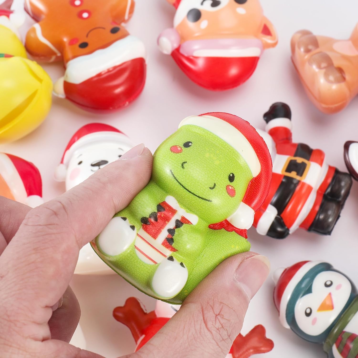 24PCS Christmas Squishy for Party Favors Gifts, Stress Relief Toys for Goodie Bags Pinata Fillers, Stocking Stuffer for Kids, Treasure Box Carnival for Prizes Rewards, Fidget Squeeze Advent Calendar