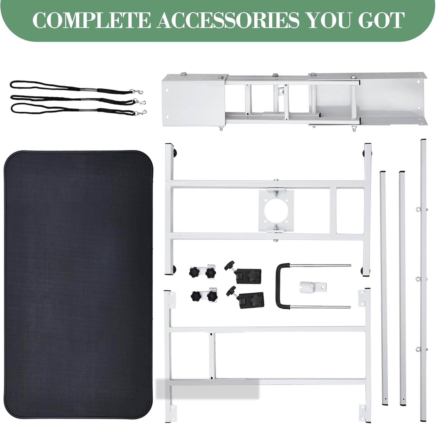 - Complete Accessories Set:This table comes with a full set of accessories, including iron booms, 2 clamps, 3 ropes, a hydraulic pump, and 1 step pole. They help secure pets during grooming for a safer process.