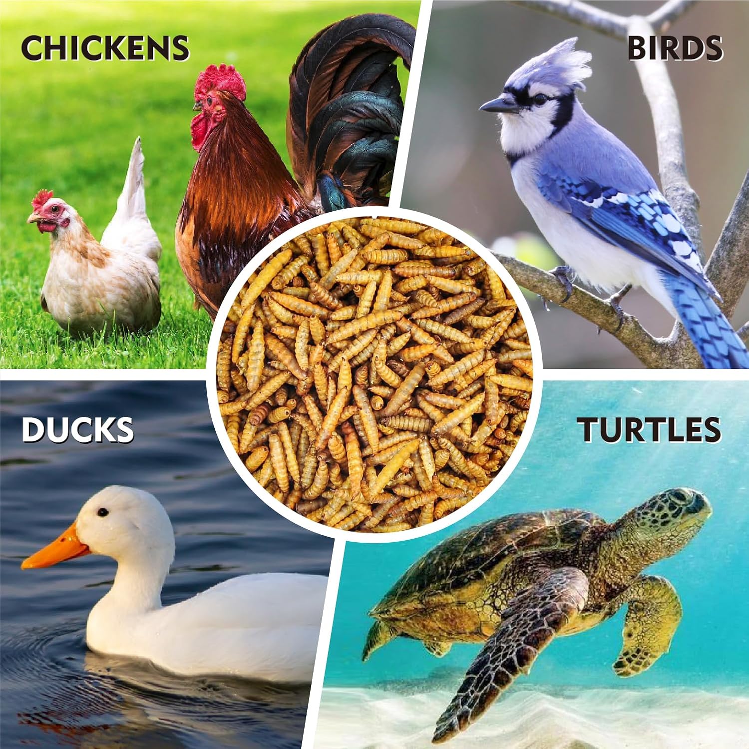 - 100% Natural & Non-GMO – No additives, preservatives, or chemicals. Just pure, farm-raised larvae that ensure a safe, nutritious, and sustainable chicken treats for backyard poultry and wild birds, making them a healthier alternative to mealworms