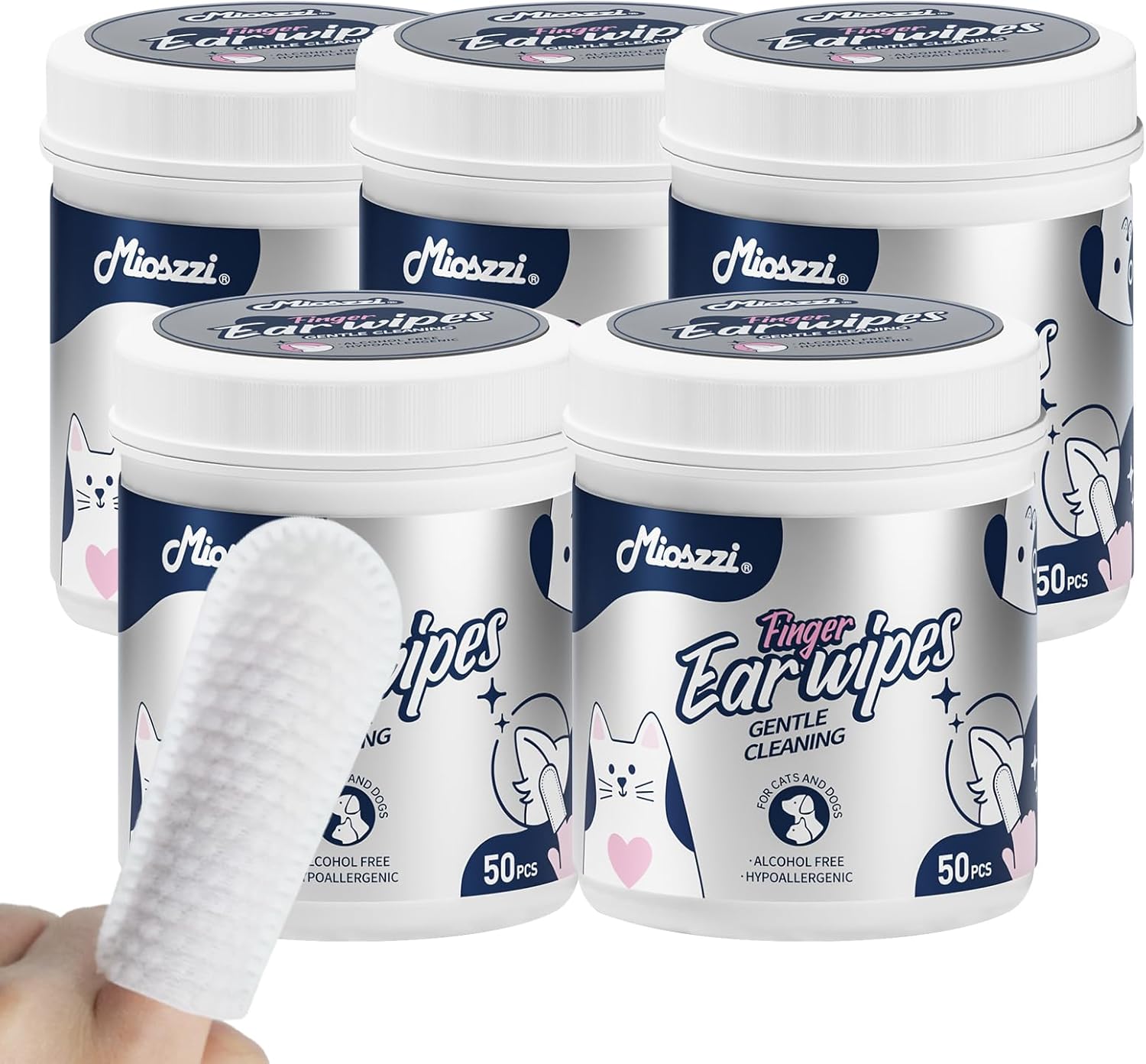 MIOSSZI 250ct Dog Ear Cleaner - Finger Wipes for Dogs & Cats Ear Wipes for Itch Relief Remove Wax & Odor, Dog Teeth Cleaning Wipes-Dog Ear Finger Wipes
