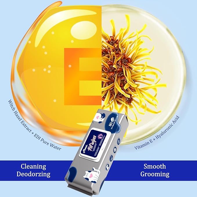 - 【Safe Formula for Pets】:Pet cleaning wipes made with EDI-purified water with the US Pharmacopoeia, hyaluronic acid, vitamin E and witch hazel extract. It can quickly gentle effective remove stubborn secretions and odors, and moisturize and smooth the fur.Using natural extracts and plant-based ingredients, it is mild, non-irritating and hypoallergenic.