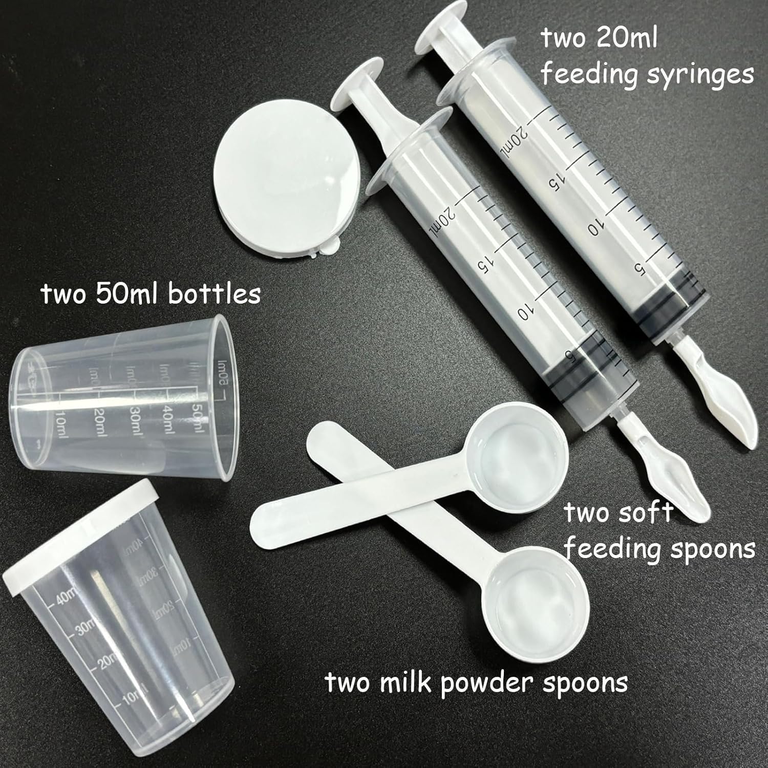 - Package Includes: You'll receive two 20ml feeding syringes, two 50ml bottles, two soft feeding spoons, and two powder scoops. This ample supply allows you to feed multiple pets simultaneously or provide spare parts in case they break, eliminating the need for frequent purchases and offering excellent value for money.