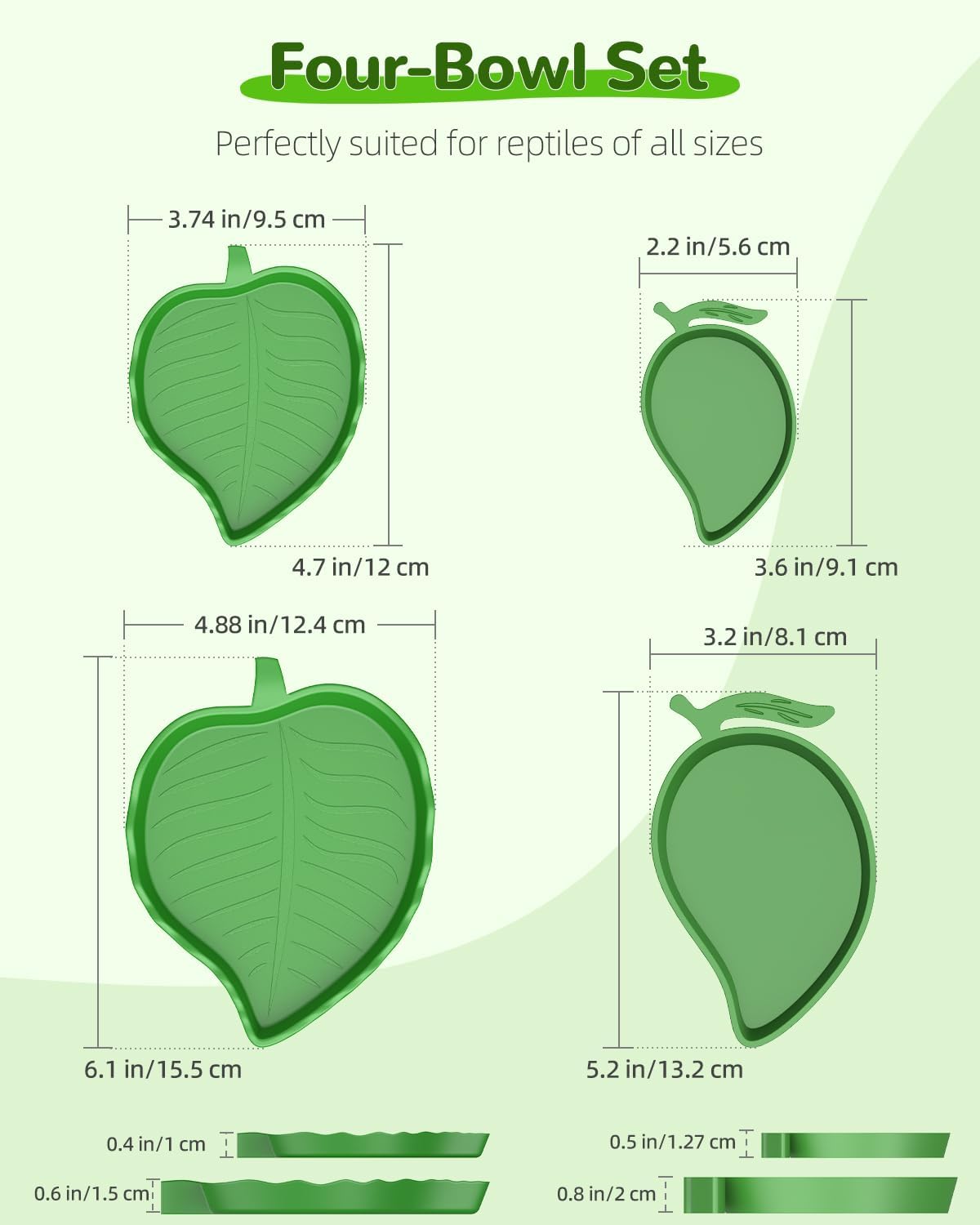 - Four-Bowl Set: Include 2 mango-shaped and 2 leaf-shaped bowls—perfect for serving water, pet food, fruit, and vegetables, keeping feeding organized and convenient. Perfectly suited for reptiles of all sizes