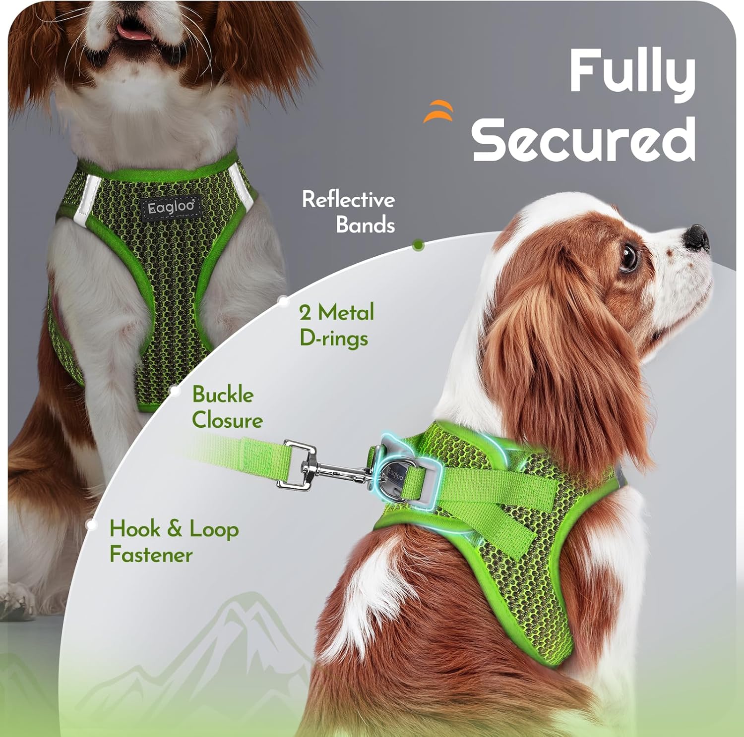 Eagloo Small Dog Harness and Leash Set, Step in Puppy Vest with Breathable Soft Mesh, Walking Reflective Pet Harness for Extra Small Dogs, Green, XXS