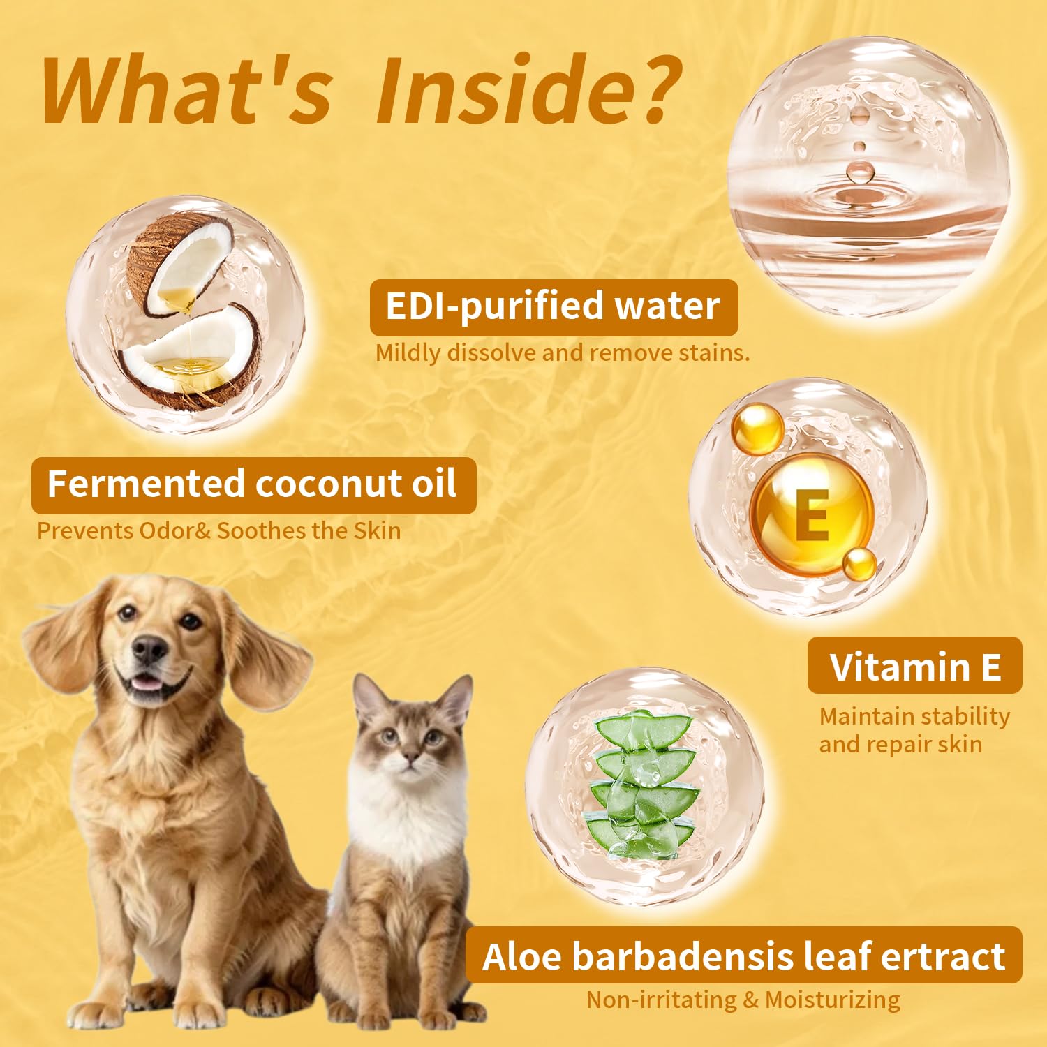 - 【Safe & Effective】 MIOSSZI pet cleaning wipes for dogs are made of 99% natural ingredients, including deeply nourishing fermented coconut oil extract, soothing aloe extract, calming witch hazel extract and stabilizing vitamin E. They are alcohol-free and hypoallergenic, gently remove dirt and odor, and reduce tear marks. The formula has a balanced pH value, which is effective and clean, and will not cause irritation or dryness.
