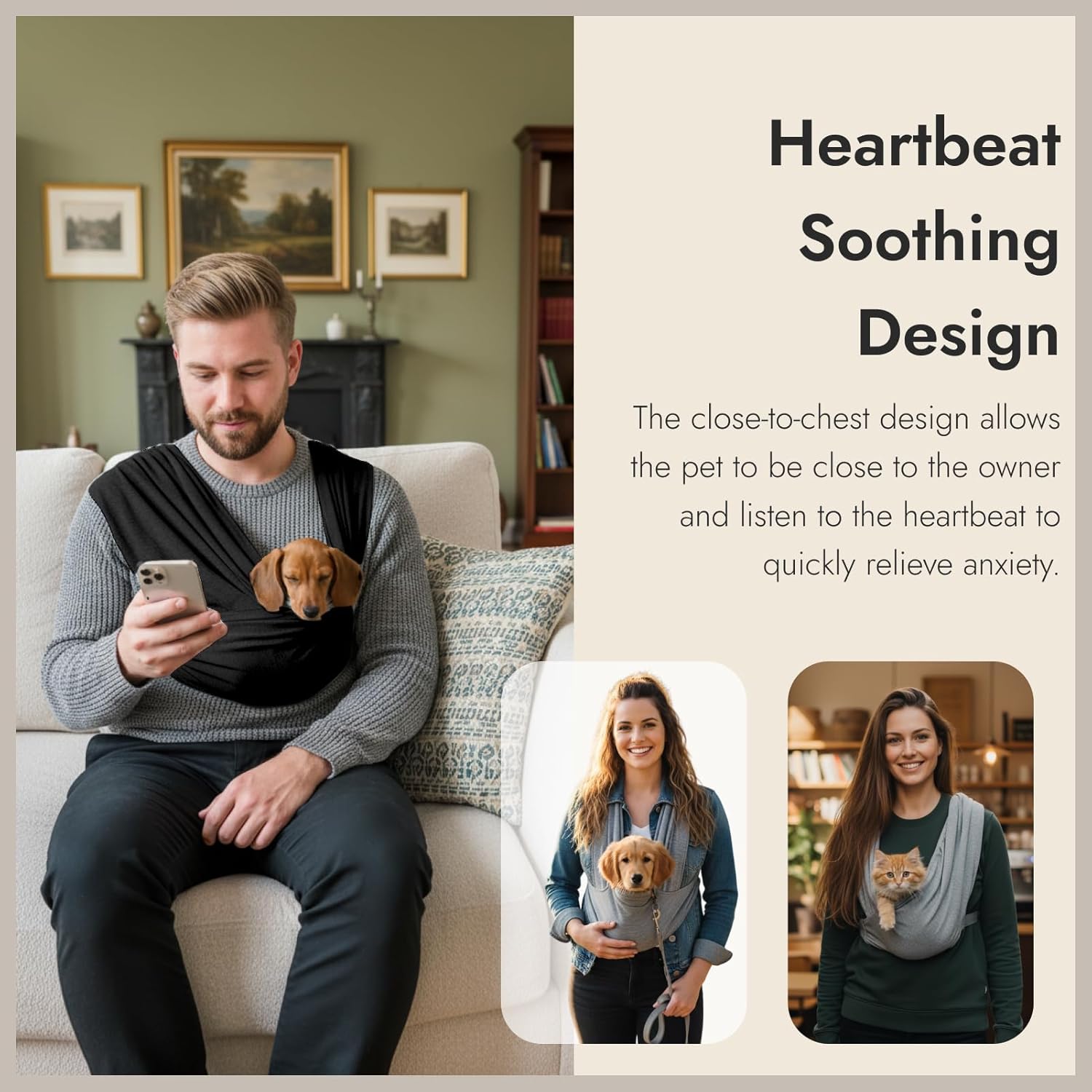 - The Ultimate Hands-Free Pet Carrier: Experience the freedom of a cat sling and dog carrier combined. This innovative front carrier keeps your small dog or cat cradled securely against your chest, liberating your hands while significantly easing strain on your back and shoulders, making every outing effortless.